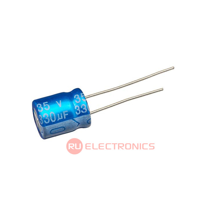 Ёмкость номинальная 330 мкФ, Допуск по ёмкости ±20% , Напряжение номинальное 35 В, Температура рабочая, min -40 °C, Температура рабочая, max 105 °C, Срок службы 2000 ч, Диаметр корпуса 10 мм, Высота корпуса 12 мм, Способ монтажа Radial , Шаг между выводами 5 мм