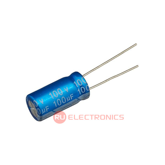 Ёмкость номинальная 100 мкФ, Допуск по ёмкости ±20% , Напряжение номинальное 100 В, Температура рабочая, min -40 °C, Температура рабочая, max 105 °C, Срок службы 2000 ч, Диаметр корпуса 10 мм, Высота корпуса 20 мм, Способ монтажа Radial , Шаг между выводами 5 мм