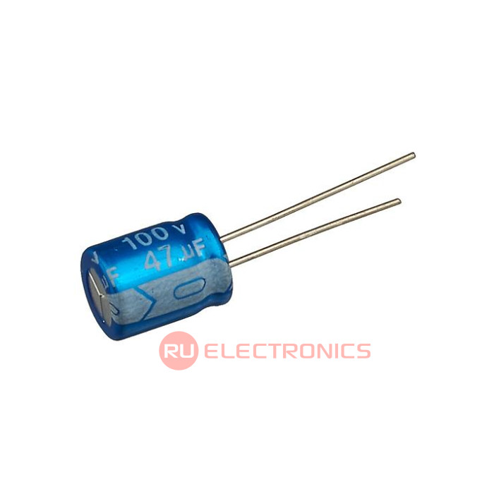 Ёмкость номинальная 47 мкФ, Допуск по ёмкости ±20% , Напряжение номинальное 100 В, Температура рабочая, min -40 °C, Температура рабочая, max 105 °C, Срок службы 2000 ч, Диаметр корпуса 10 мм, Высота корпуса 12.5 мм, Способ монтажа Radial , Шаг между выводами 5 мм