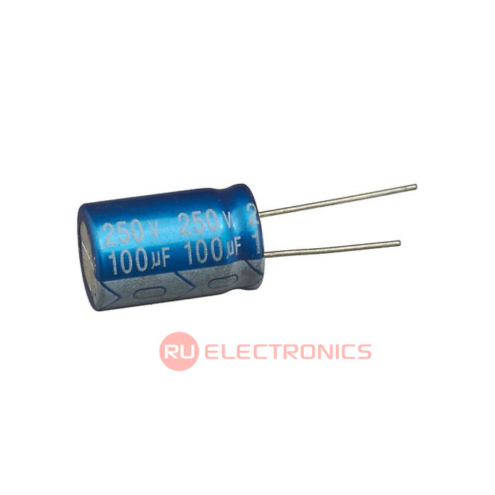 Ёмкость номинальная 100 мкФ, Допуск по ёмкости ±20% , Напряжение номинальное 250 В, Температура рабочая, min -25 °C, Температура рабочая, max 105 °C, Срок службы 2000 ч, Диаметр корпуса 16 мм, Высота корпуса 25 мм, Способ монтажа Radial , Шаг между выводами 7.5 мм, Длина 16 мм, Ширина 16 мм, Высота 25 мм, Примечание Aluminum Electrolytic Capacitor, Polarized, Aluminum (wet), 250V, 20% +Tol, 20% -Tol, 100uF, Through Hole Mount