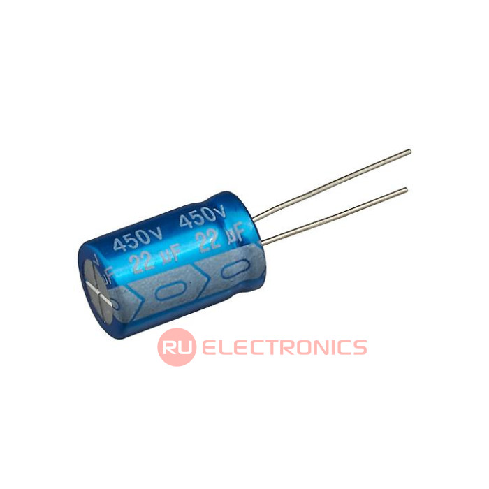 Ёмкость номинальная 22 мкФ, Допуск по ёмкости ±20% , Напряжение номинальное 450 В, Температура рабочая, min -25 °C, Температура рабочая, max 105 °C, Срок службы 2000 ч, Диаметр корпуса 13 мм, Высота корпуса 20 мм, Способ монтажа Radial , Шаг между выводами 5 мм, Длина 13 мм, Ширина 13 мм, Высота 20 мм, Примечание Aluminum Electrolytic Capacitor, Polarized, Aluminum (wet), 450V, 20% +Tol, 20% -Tol, 22uF, Through Hole Mount