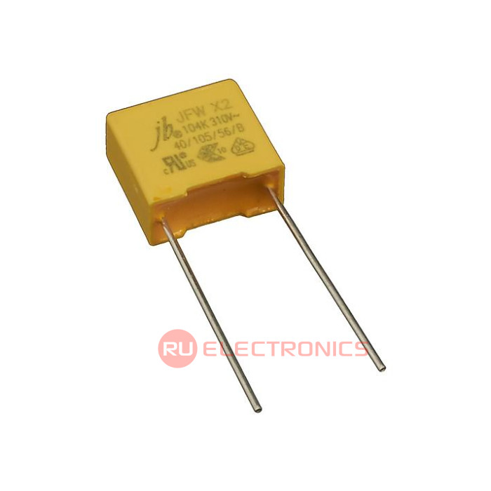 Ёмкость номинальная 0.1 мкФ, Допуск по ёмкости ±10% , Напряжение постоянное номинальное 0 В, Напряжение переменное номинальное 310 В, Тип диэлектрика Polypropylene (PP), Metallized , Способ монтажа на плату, THT , Шаг выводов 10 мм, Классификация X2 , Температура рабочая -40 °C, Температура рабочая 110 °C, Длина 13 мм, Ширина 6 мм, Высота 12 мм, Примечание Film Capacitor, Polypropylene, 10% +Tol, 10% -Tol, 0.1uF, Through Hole Mount