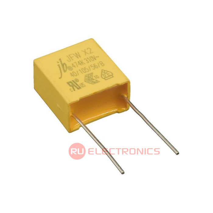 Ёмкость номинальная 0.47 мкФ, Допуск по ёмкости ±10% , Напряжение постоянное номинальное 0 В, Напряжение переменное номинальное 310 В, Тип диэлектрика Polypropylene (PP), Metallized , Способ монтажа на плату, THT , Шаг выводов 15 мм, Классификация X2 , Температура рабочая -40 °C, Температура рабочая 110 °C, Длина 18 мм, Ширина 9.5 мм, Высота 15.5 мм, Примечание Film Capacitor, Polypropylene, 10% +Tol, 10% -Tol, 0.47uF, Through Hole Mount