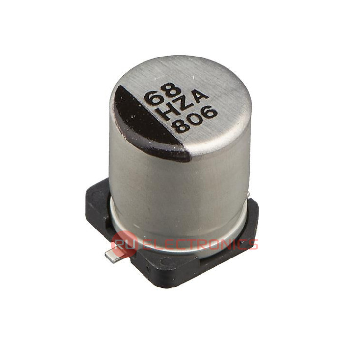 Ёмкость номинальная 68 мкФ, Допуск по ёмкости ±20% , Напряжение номинальное 50 В, Температура рабочая, min -55 °C, Температура рабочая, max 105 °C, Срок службы 10000 ч, Диаметр корпуса 8 мм, Высота корпуса 10.2 мм, Способ монтажа SMD , Длина 8 мм, Ширина 8 мм, Высота 8.3 мм, Примечание low ESR / Hybrid