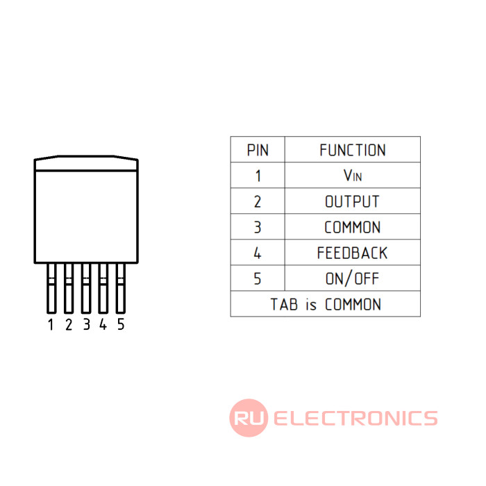 LM2575SX-5.0 DC/DC понижающий (Buck) преобразователь для поверхностного монтажа в корпусе TO-263-5. Диапазон входного напряжения -0.3 ... 45 В, выходное напряжение 5 В. Выходной ток 1 А. Пиковый выходной ток 3 А. Ток покоя не более 500 мкА. Встроенная защита от перегрузки по току и превышения температуры.