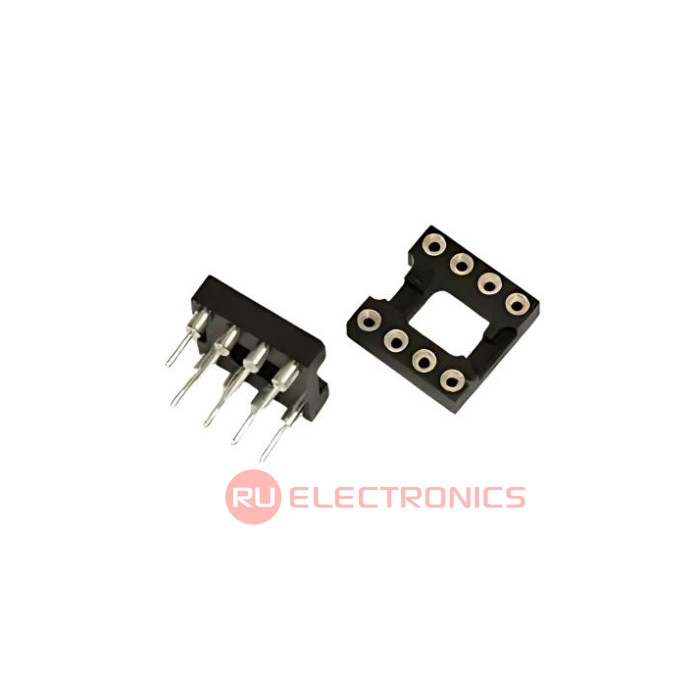 Корпус —, Количество контактов 8 , Шаг 2.54 мм, Способ монтажа Сквозные отверстия , Примечание 2,54 IC Socket (Machine pin), Vertical, Through hole, 8P, width 7,62mm