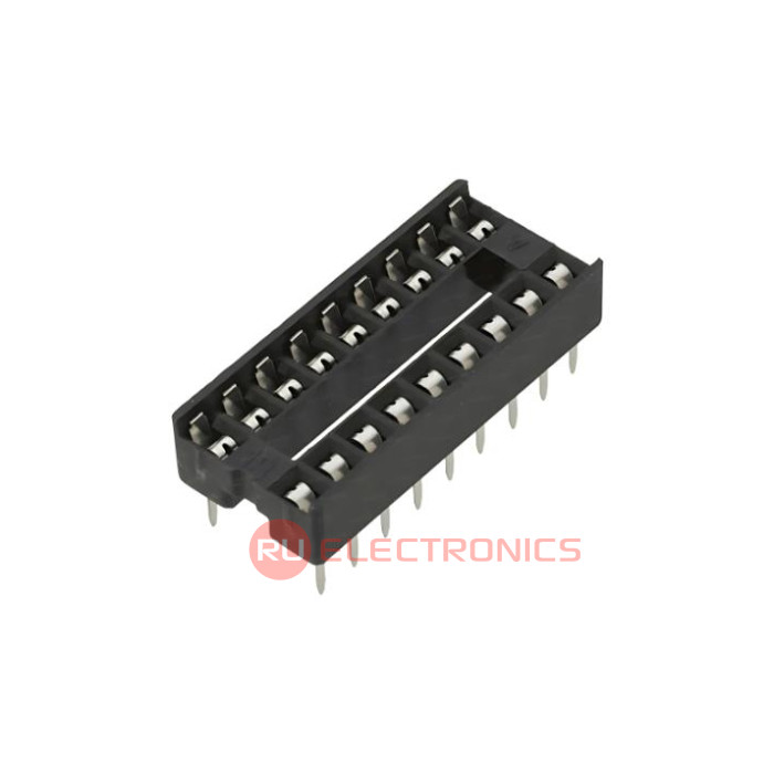Корпус DIP18 , Количество контактов 18 , Шаг 2.54 мм, Способ монтажа Сквозные отверстия , Примечание StamPing Type IC Socket,Spacing - 2,54mm, 18Pin,Lower plate type - V/T, Width -7,62mm,Contact type-W/O kink, Contact plating - Tin, Central support -W/O centralsupport, PBT,Tube + Plastic Nail, 2 Inner Box/Outer Box