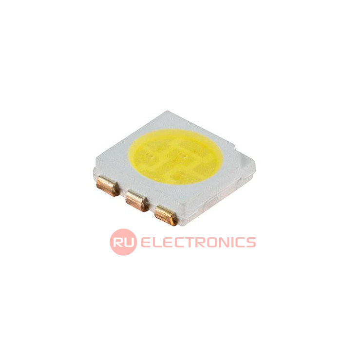 Цвета свечения холодный белый , Количество цветов в корпусе 1 , Сила света 1 кристалла 7 кд, Цветовая температура, min 5000 K, Цветовая температура, max 6000 K, Падение напряжения, тип. 3.2 В, Угол по горизонтали 120 °, Угол по вертикали 120 °, CIE x 0.34 , CIE y 0.36 , Тип корпуса SMD 5050 , Тип линзы прозрачная , Схема включения универсальная , Длина 5 мм, Ширина 5 мм, Высота 1.5 мм, Рабочая температура -30 °C, Рабочая температура 80 °C