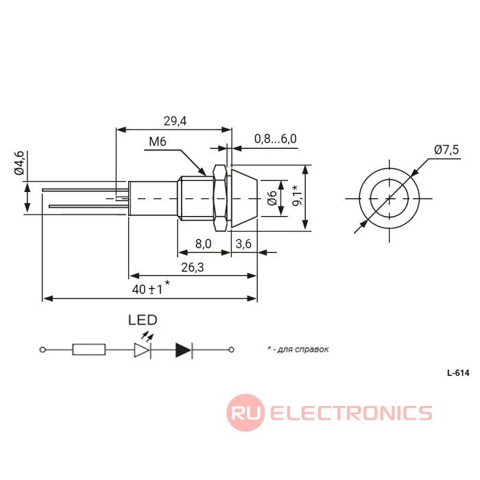 | Тип | Индикатор светодиодный в корпусе серии L-614 |