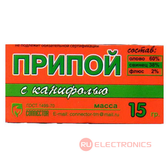 | Состав | Sn - 60%; PB - 38%; канифоль - 2% |
