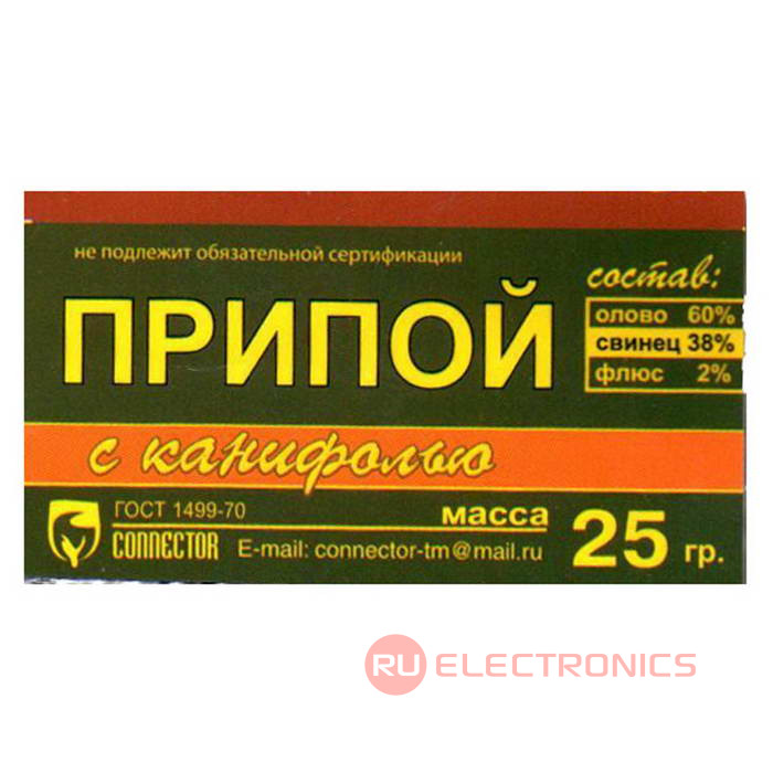 Состав Sn - 60%; PB - 38%; канифоль - 2%