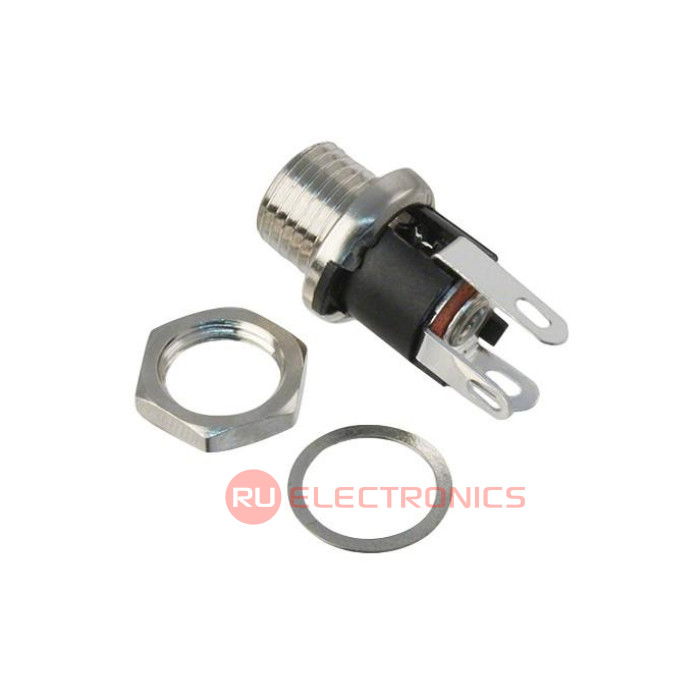 Примечание DC Power Jack For Panel Mount,Solder Lug Type,Straight,Black,Center pin:2.5mm,Rated:DC 16V 2.0A Max.
