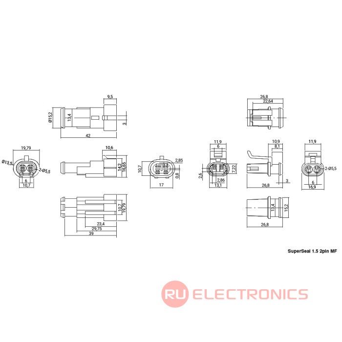 Разъем RUICHI SuperSeal 1.5, 2pin MF, 2 контактакта