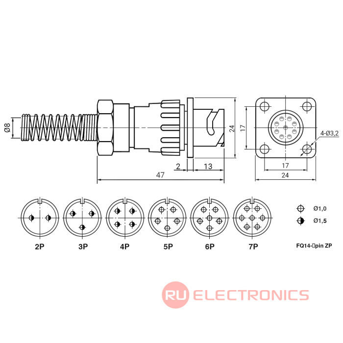 | Тип разъёма | Разъем быстросъемный цилиндрический серии FQ14 |