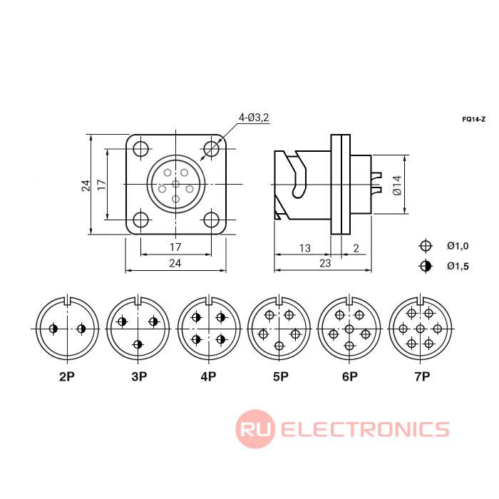 | Тип разъёма | Разъем быстросъемный цилиндрический серии FQ14 |