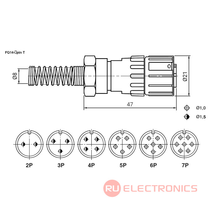 | Тип разъёма | Разъем быстросъемный цилиндрический серии FQ14 |