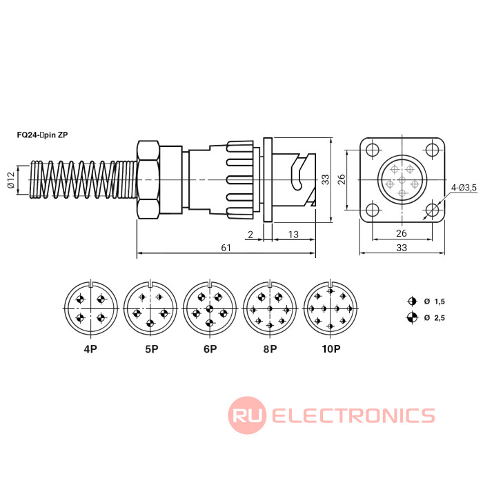 | Тип разъёма | Разъем быстросъемный цилиндрический серии FQ24 |