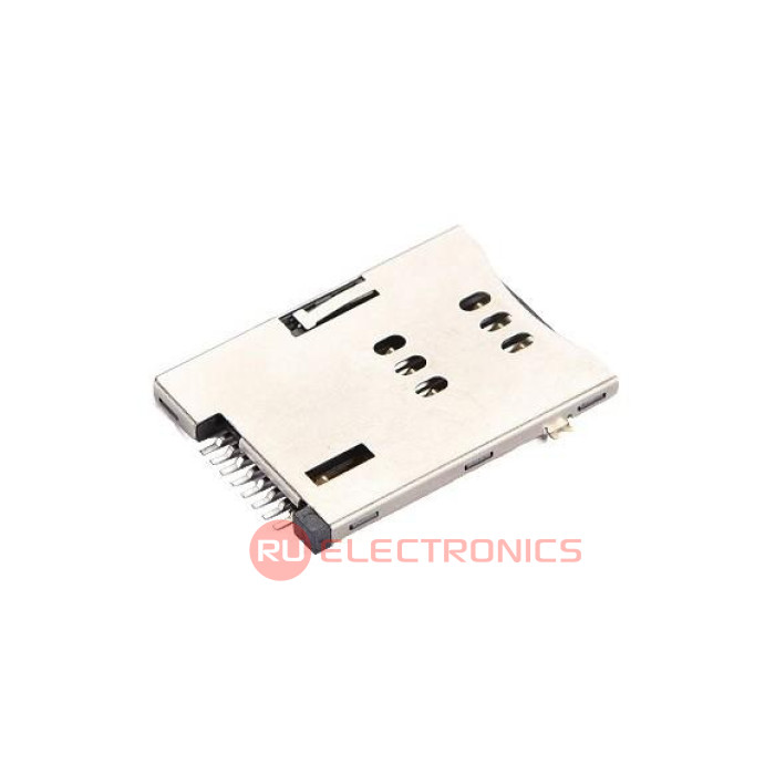 Тип карт SIM , Расстояние между соседними контактами 1.27 мм, Количество контактов 8 , Тип монтажа Поверхностный , Длина 19.35 мм, Ширина 26.5 мм, Высота 1.85 мм, Рабочая температура -45 °C, Рабочая температура 85 °C, Примечания SIM Card Connector PUSH-PUSH,6+2 Pins,Without post,Roll Pack