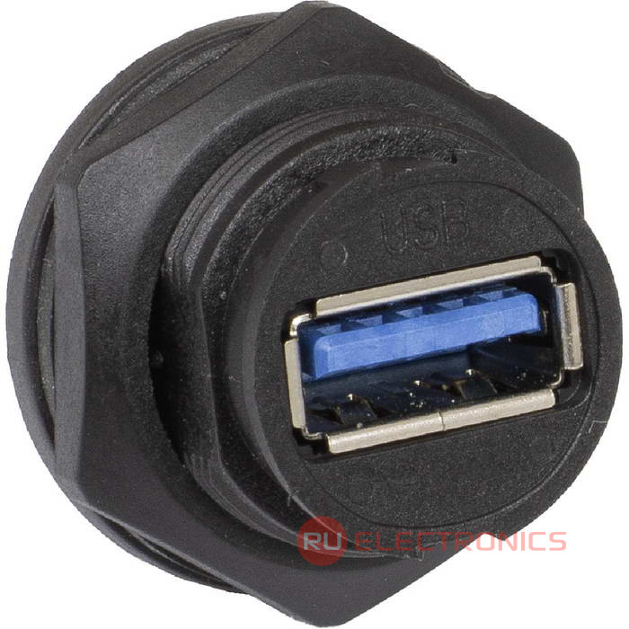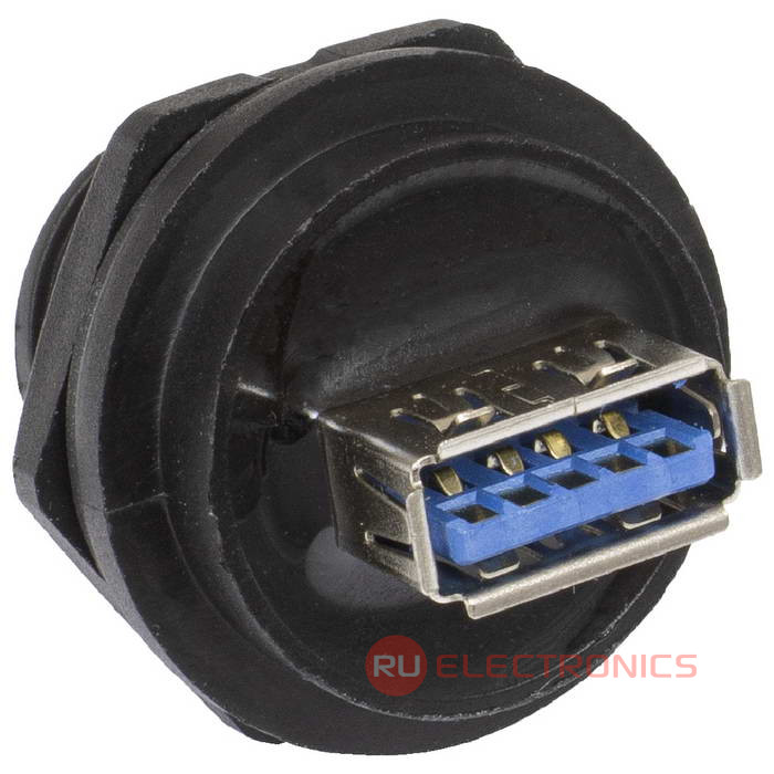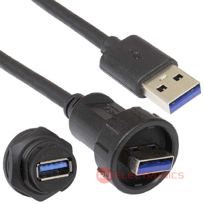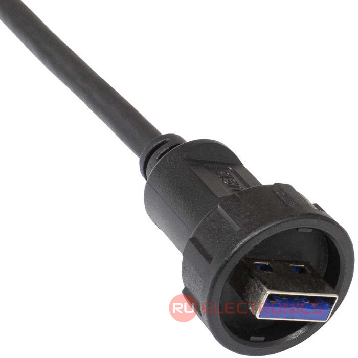 Герметичный разъем USB-3.0B-C-02, кабель-блок, IP67, корпус PA66 UL94V-0, черный, является пылезащищенным и влагозащищенным. Герметичный разъем соответствует высокой степени защиты, что гарантирует работу разъемов при длительном погружении в воду (более 30 минут) на глубину больше 1 м. Отличительной и главной особенностью является байонетное соединение, что делает монтаж быстрым и надежным. Такой тип соединения позволяет использовать разъемы в стесненных условиях.