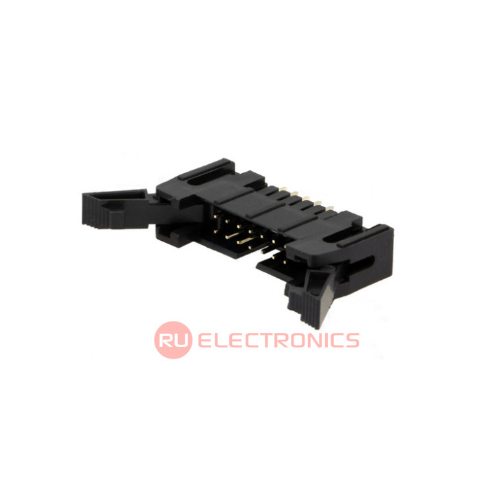 Вилка IDC на плату; "папа"; 14 контактов; 2 ряда по 7; шаг 2.54 мм; прямой; боковые защелки 7.9 мм; THT; позолота.