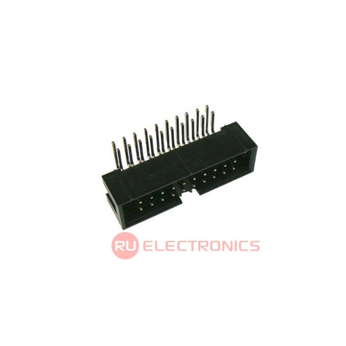 Тип разъема Вилка на плату , Расстояние между соседними контактами 2.54 мм, Количество контактов 20 , Рабочий ток контактов 3 А, Рабочее напряжение контактов 250 В, Тип монтажа Сквозные отверстия , Расположение контактов разъема Угловое