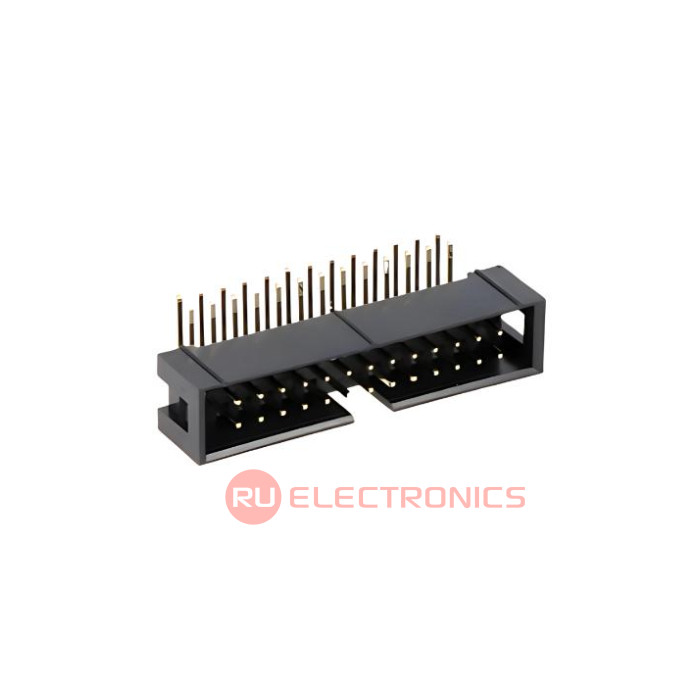Тип разъема Вилка на плату , Расстояние между соседними контактами 2.54 мм, Количество контактов 26 , Рабочий ток контактов 3 А, Рабочее напряжение контактов 250 В, Тип монтажа Сквозные отверстия , Расположение контактов разъема Угловое