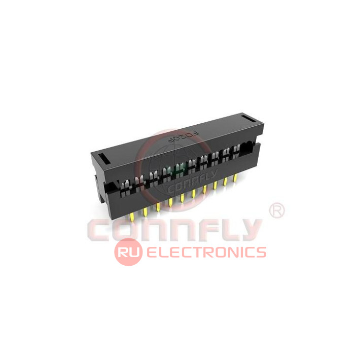 Тип разъема IDC , Расстояние между соседними контактами 2.54 мм, Количество контактов 26 , Рабочий ток контактов 1 А, Рабочее напряжение контактов 125 В, Тип монтажа Сквозные отверстия , Расположение контактов разъема Вертикальное , Тип обжимаемого кабеля FRC 1.27