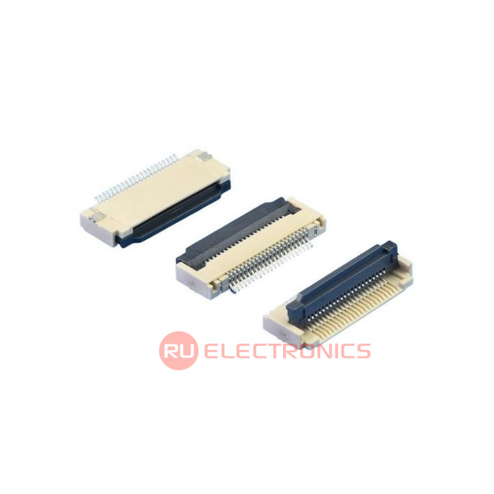 Тип разъема FFC , Тип монтажа Поверхностный , Шаг выводов 0.5 мм, Количество контактов 30 , Примечание 0.50mm Pitch FFC/FPC connectors,hinged lock H2.0mm bottom contacts,30 Pins,SMT