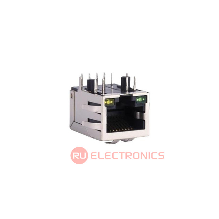 Тип соединителя Розетка , Конфигурация RJ45 , Количество портов разъема 1 , Категория производительности Cat5e , Количество позиций/контактов 8P8C , Монтаж Сквозные отверстия , Расположение контактов Угловое , Примечания с трансформатором
