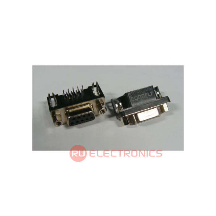 Тип соединителя Разъем , Тип разъема Розетка , Монтаж Пайка на плату , Количество контактов 9 , Тип монтажа Сквозные отверстия , Расположение контактов разъема Угловое , Типоразмер корпуса 1 , Коммерческое наименование DRB-9FA