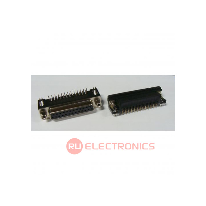 Тип соединителя Разъем , Тип разъема Розетка , Монтаж Пайка на плату , Количество контактов 25 , Тип монтажа Сквозные отверстия , Расположение контактов разъема Угловое , Коммерческое наименование DRB-25FA