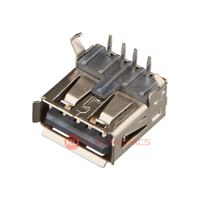 Стандарт USB 2.0 , Тип стандарта Type A , Монтаж На плату, выводной , Тип разъема Розетка , Количество портов 1 , Расположение контактов Угловое горизонтальное