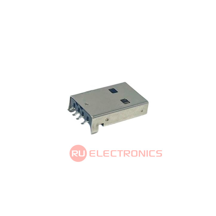Стандарт USB 2.0 , Тип стандарта Type A , Монтаж На плату, SMD , Тип разъема Розетка , Количество портов 1 , Расположение контактов Угловое горизонтальное