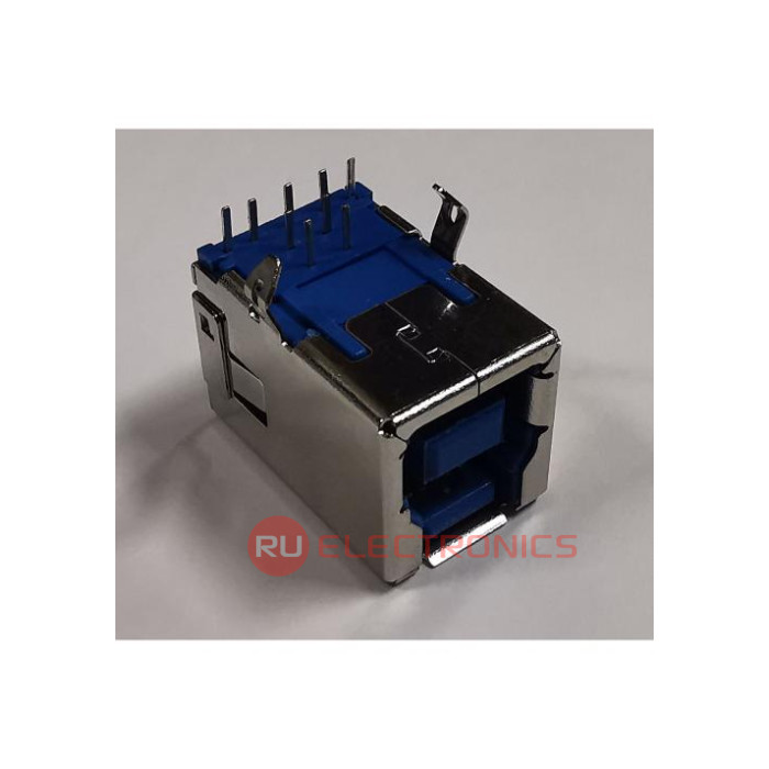 Стандарт USB 3.0 , Тип стандарта Type B , Монтаж На плату, выводной , Тип разъема Розетка , Количество портов 1 , Расположение контактов Угловое горизонтальное