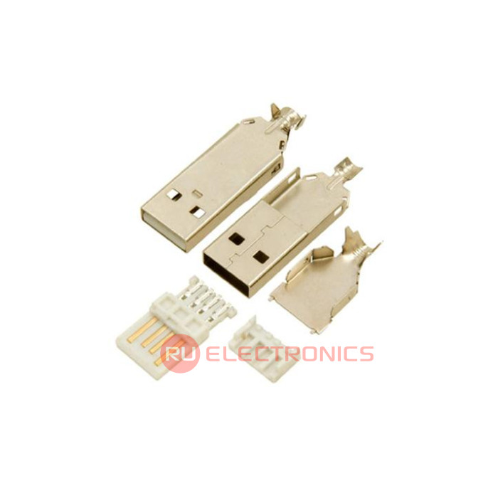 Разъем USB; вилка; 4 контакта; тип A; вилка на кабель; белый изолятор