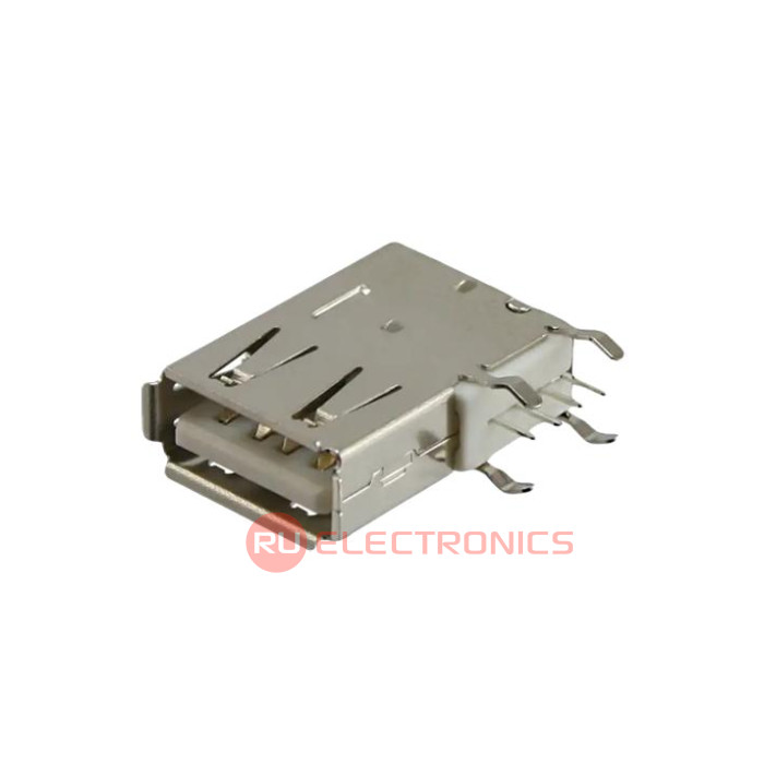 Стандарт USB 2.0 , Тип стандарта Type A , Монтаж На плату, выводной , Тип разъема Розетка , Количество портов 1 , Расположение контактов Угловое вертикальное