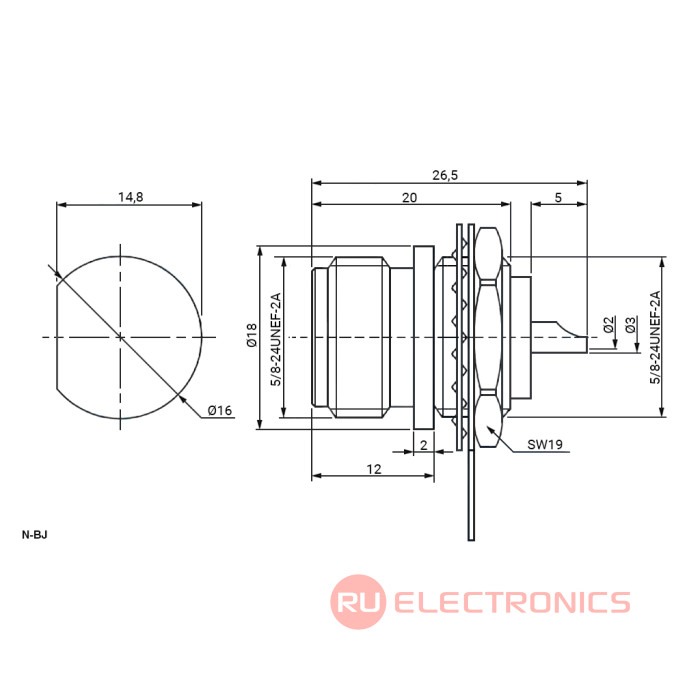 | Тип разъёма | Гнездо (jack) N-типа с гайкой, монтаж на панель |