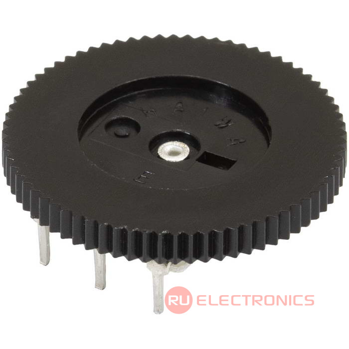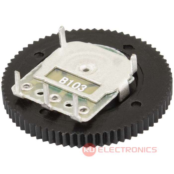 Дуплексный зубчатый потенциометр (переключатель громкости) RUICHI B103, 10 кОм, 1 А, 50 В/12 В, 3 контакта, корпус: толщина 2 мм, диаметр 20 мм используются при многократных регулировках аппаратуры, обладают большой износоустойчивостью.