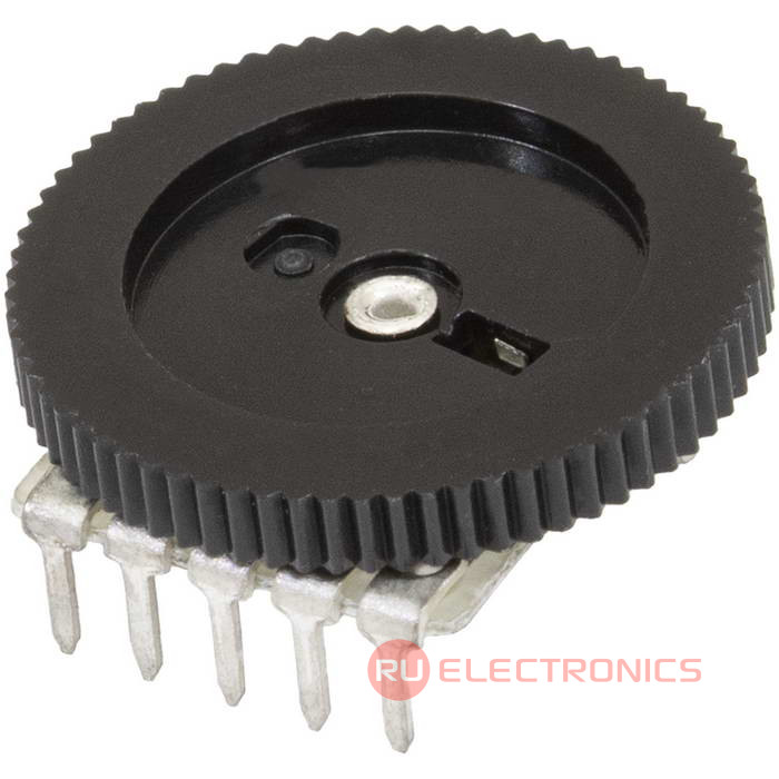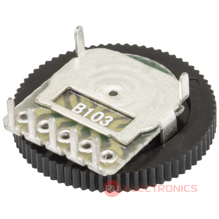 Дуплексный зубчатый потенциометр (переключатель громкости) RUICHI B103, 10 кОм, 1 А, 50 В/12 В, 5 контактов, корпус: толщина 2 мм, диаметр 16 мм используются при многократных регулировках аппаратуры, обладают большой износоустойчивостью.