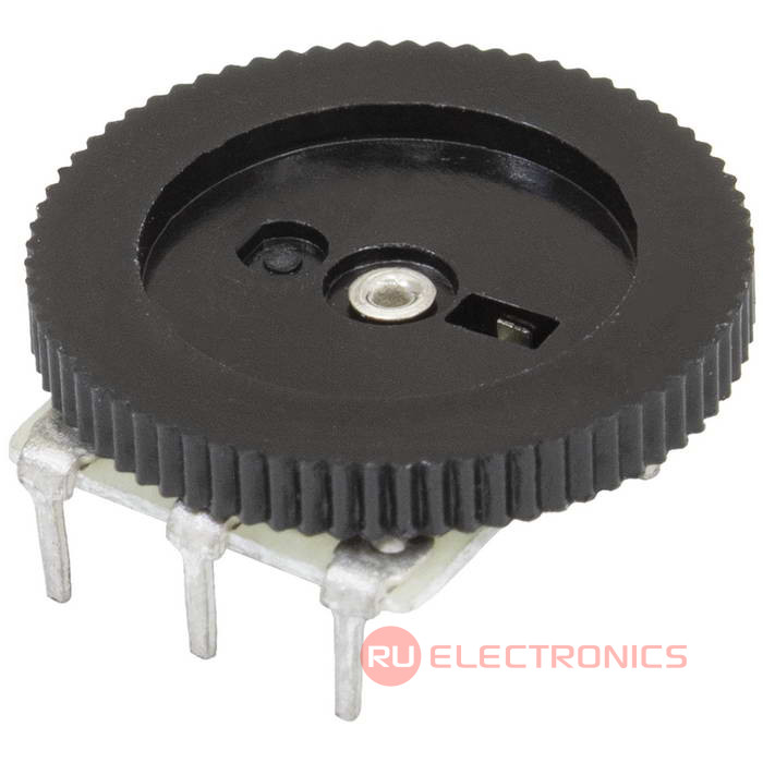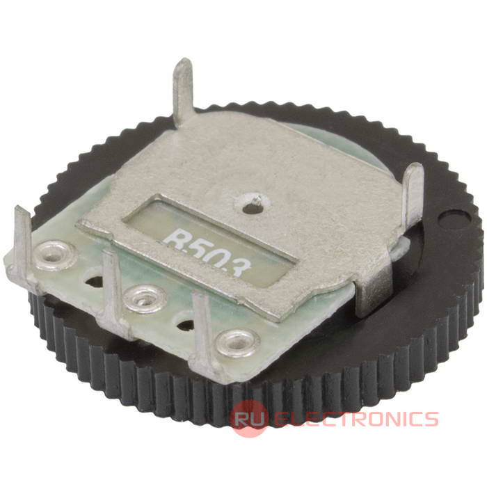 Дуплексный зубчатый потенциометр (переключатель громкости) RUICHI B503, 50 кОм, 1 А, 50 В/12 В, 3 контакта, корпус: толщина 2 мм, диаметр 16 мм используются при многократных регулировках аппаратуры, обладают большой износоустойчивостью.