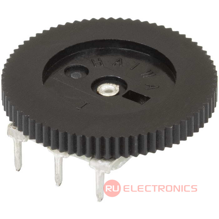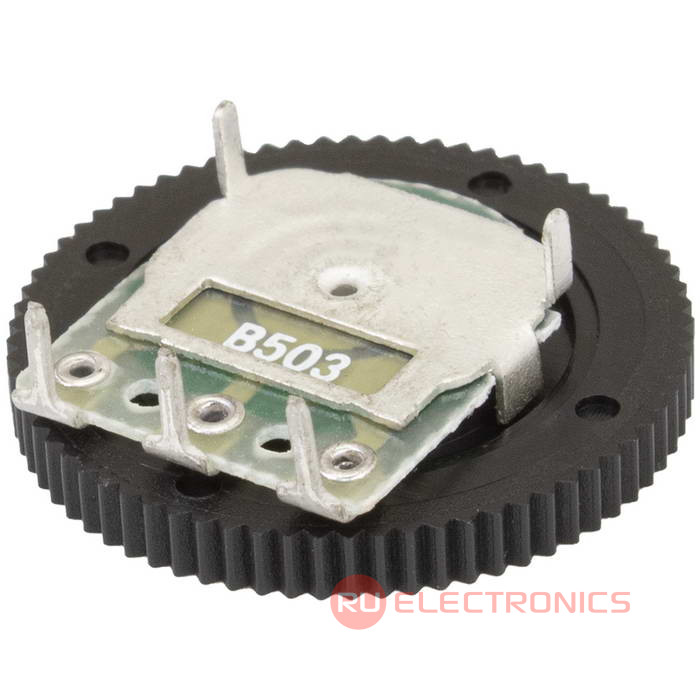 Дуплексный зубчатый потенциометр (переключатель громкости) RUICHI B503, 50 кОм, 1 А, 50 В/12 В, 3 контакта, корпус: толщина 2 мм, диаметр 18 мм используются при многократных регулировках аппаратуры, обладают большой износоустойчивостью.