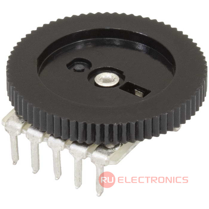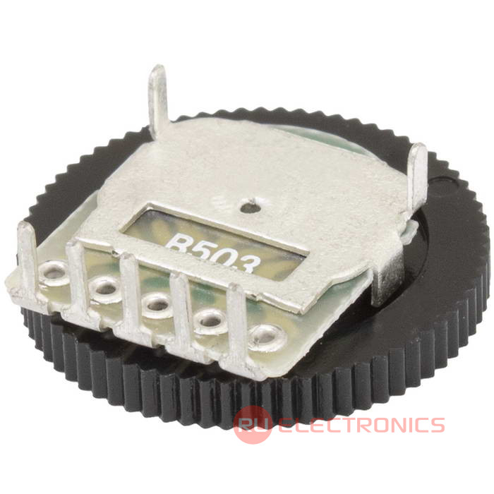Дуплексный зубчатый потенциометр (переключатель громкости) RUICHI B503, 50 кОм, 1 А, 50 В/12 В, 5 контактов, корпус: толщина 2 мм, диаметр 16 мм используются при многократных регулировках аппаратуры, обладают большой износоустойчивостью.