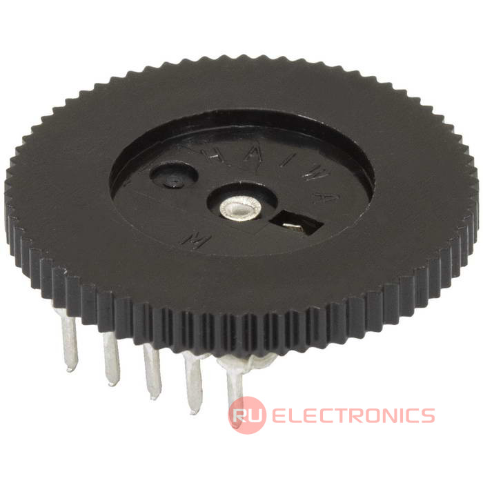 Дуплексный зубчатый потенциометр (переключатель громкости) RUICHI B503, 50 кОм, 1 А, 50 В/12 В, 5 контактов, корпус: толщина 2 мм, диаметр 20 мм используются при многократных регулировках аппаратуры, обладают большой износоустойчивостью.