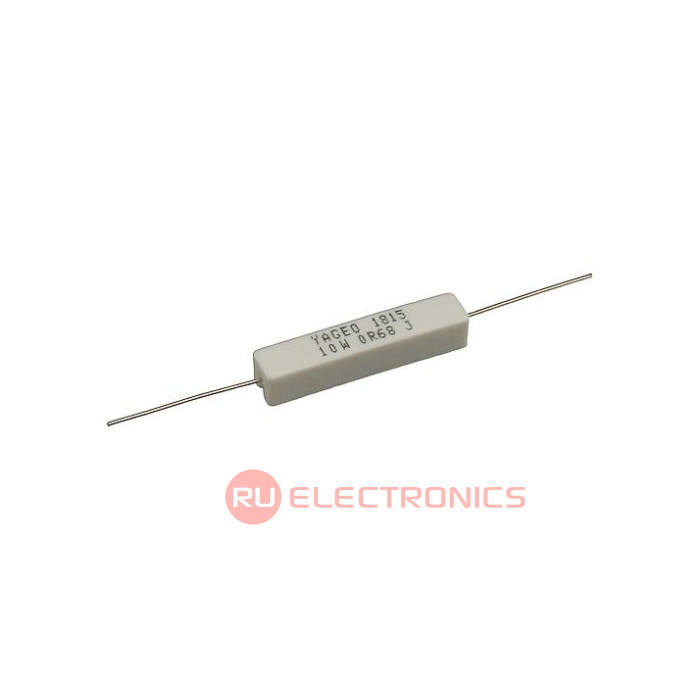 Сопротивление номинальное 680 мОм, Допуск по сопротивлению 5% , Мощность рассеиваемая 10 Вт, Температурный коэффициент сопротивления 300 ppm/°C, Корпус производителя AXIAL , Способ монтажа lead , Примечание Cement resistor