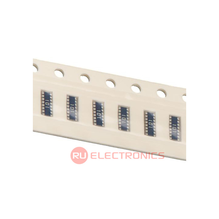 Количество резисторов в сборке 8 , Номинальное сопротивление 100 Ом, Нормированный допуск 5% , Рассеиваемая мощность 62.5 мВт, Температурный коэффициент сопротивления 200 ppm/K, Способ монтажа Поверхностный , Примечания YC/TC Chip Resistor Array , Тип выводов Convex