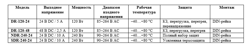 от –40 до +80 °C, обладают высоким ресурсом надёжности - MTBF более 100 000 часов - и способны стабильно выдавать заявленную мощность даже при максимальных нагрузках.