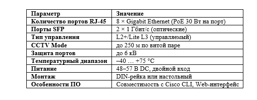Модели выпускаются на 4 или 8 портов RJ-45 с поддержкой PoE до 30 Вт на порт. Для магистральных соединений предусмотрены оптические порты SFP (1 Гбит/с), что позволяет объединять узлы на расстоянии до 20 км. Встроенный режим CCTV Mode увеличивает дальность PoE-линии до 250 м при сниженной скорости, что идеально подходит для подключения удалённых камер.