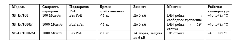 Линейка устройств включает модели на 100 и 1000 Мбит/с, с поддержкой PoE и без неё, а также варианты на 1, 4, 8, 16 или 24 канала. Грозозащита RUICHI может устанавливаться на DIN-рейку, в 19-дюймовую стойку или использоваться как отдельный модуль в шкафу видеонаблюдения.