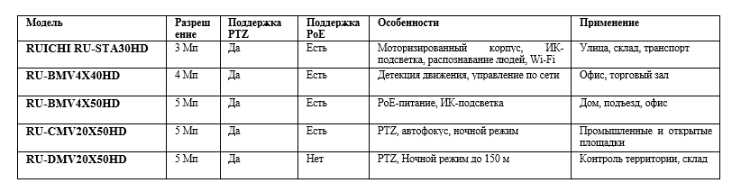 Таблица 6: Основные характеристики IP-камер RUICHI