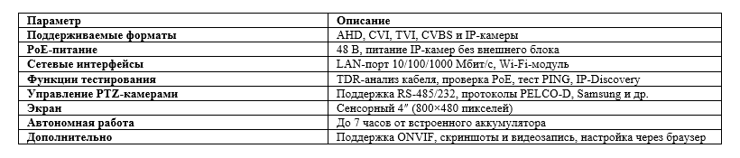 По функциональности такой прибор объединяет сразу несколько инструментов: монитор для вывода изображения, анализатор сигнала, PoE-источник питания и средство измерения параметров кабеля. Всё это делает тестеры RUICHI незаменимыми при пусконаладке или техническом обслуживании видеосистем.